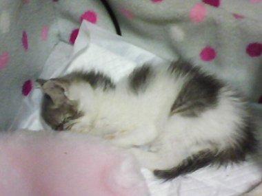 最初はベッドの中に入れても、ほとんど居場所を変えることも、下手したら寝返りすらうてない子でしたが、今日ちらっと見ると最初寝てた場所とまったく反対側で眠ってました。