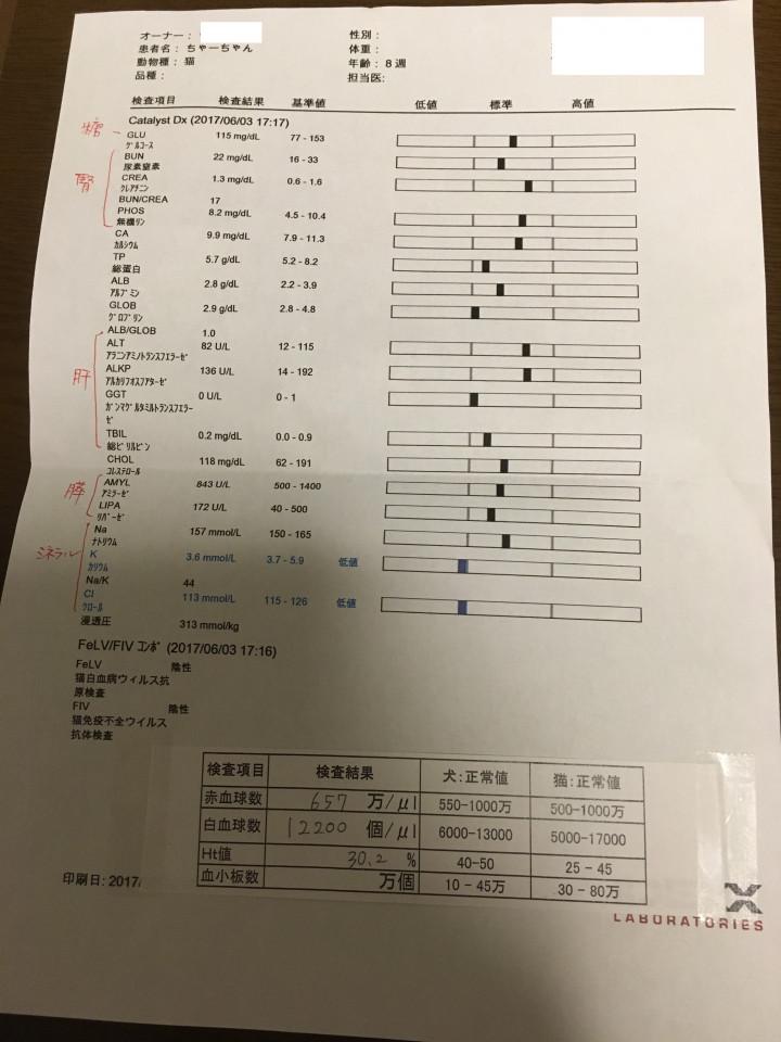 あまり、猫ってお水を飲むイメージないのですが、ちゃーちゃんは結構飲むので(と言っても”多飲”というほどではないのですが)ちょっと気になったので、血液検査をしてもらいました。