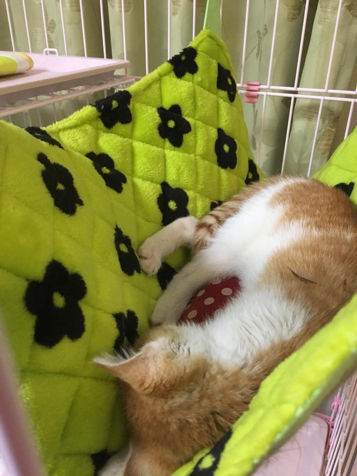慣れない(狭いとこもしかして苦手なのかも)キャリーケースに入れられ、病院でチックンされ、血もたくさん採られ、ついでにワクチンまで打たれてしまったちゃーちゃん