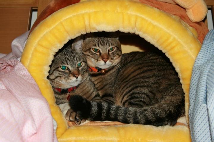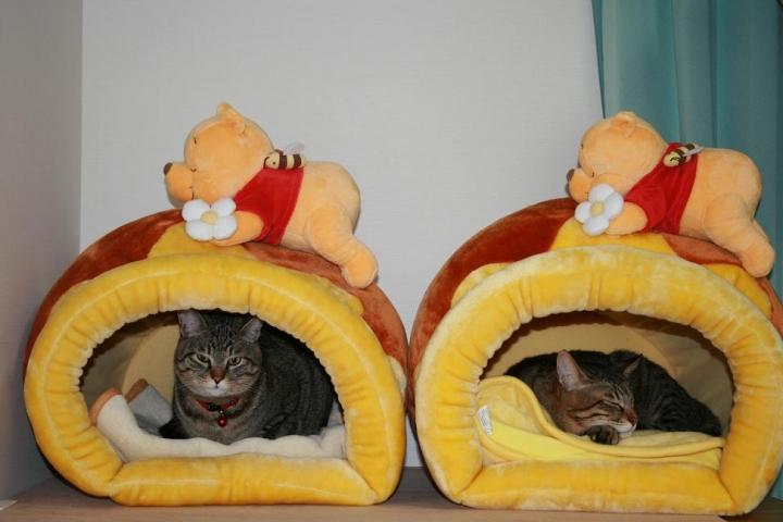 父さんが「それぞれのベッドに名札を付けてやろう!!!」と言いましたが、「ネコは字が読めないよ。」の私の一言で名札の件は、ボツになりました。