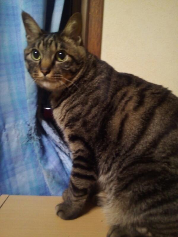 本日も警備を頑張っています!!カーテンがボロボロなのは仕事の証ですにゃ!!
