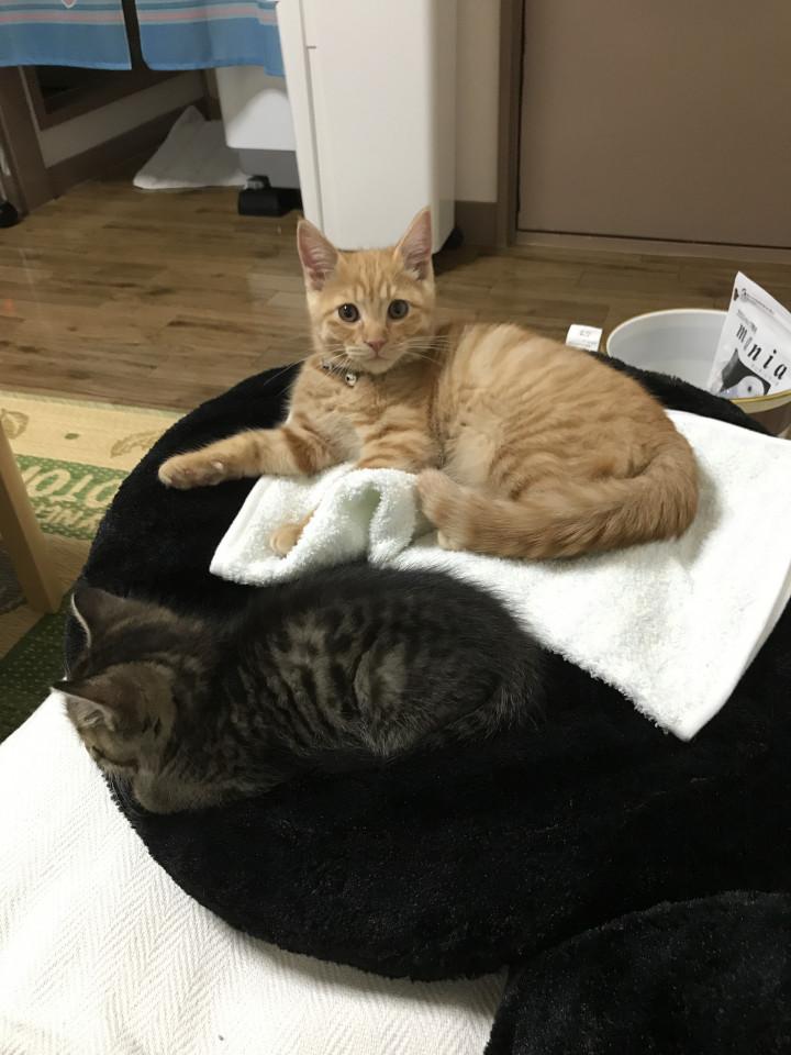 長男 カイン 2017年3月7日 茶虎 去勢済み ♂ マイクロチップ済み フード ヒルズk/d腎臓ケア 朝晩ラプロス 1日60g 次男 アベル 2017年4月22日 雉虎 去...