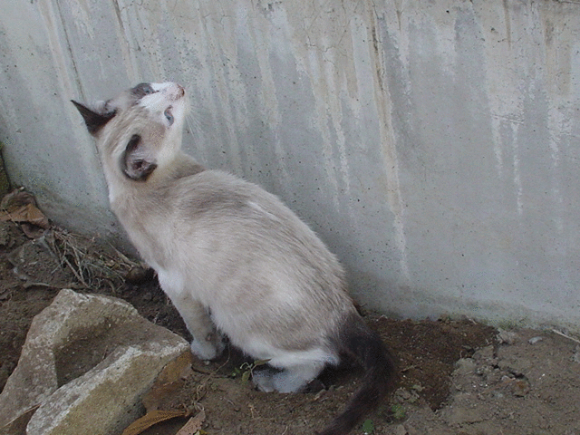 塀は手を伸ばして届く高さじゃないので、台を持ってきて、トラを捕獲~。