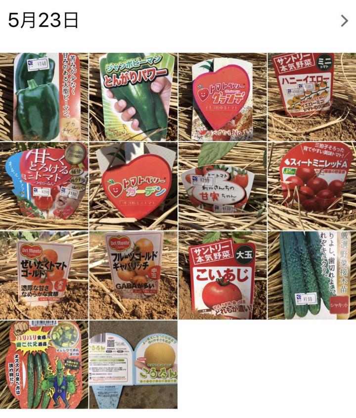 大玉トマト・ズッキーニ・インゲン豆・枝豆・とうもろこし・イチゴ・ツルムラサキ・セロリ