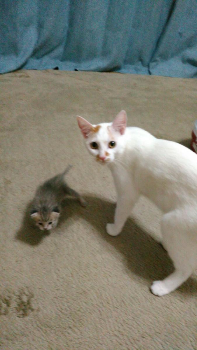 ネズミサイズの頃は遠巻きだったけど、歩き出したら猫と認識できたのね!
