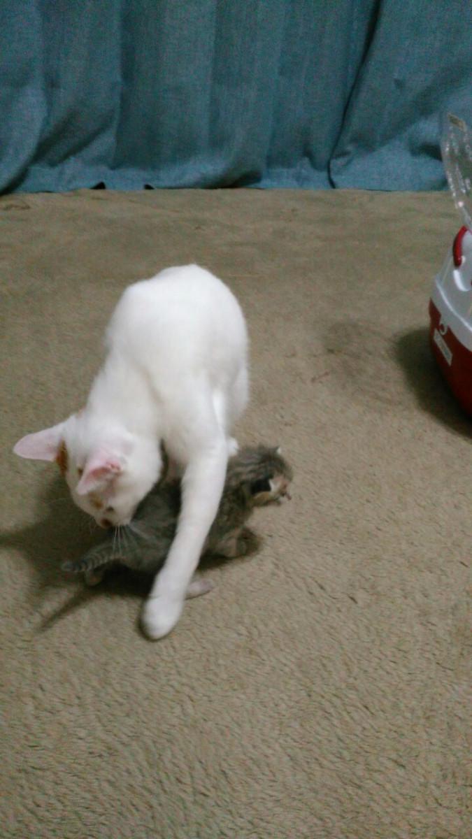 わらびもこなつもエイズ白血病陰性で、かつ3種混合ワクチン&白血病ワクチンを打っているので安心して子猫の社会科を任せています。