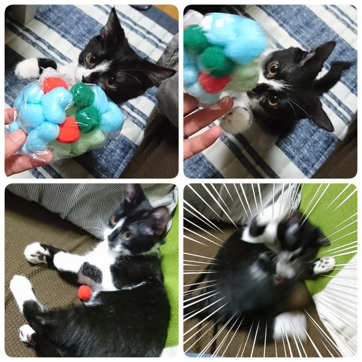 仕事場の猫飼いさんから、おもちゃいろいろいただいたりしてかなり助かってる。うちもあれこれ買うけど、手作りしたりして工夫もしてる。あとは綿棒、ワインのコルク、アルミホイル丸めたのなど。今日はショッパー袋の持ち手の紐が大ヒットw
