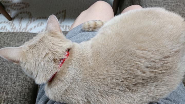 初めて膝に乗ってくれた🎵 今までは飛び越すか踏んづけていくか、だったけど😜
