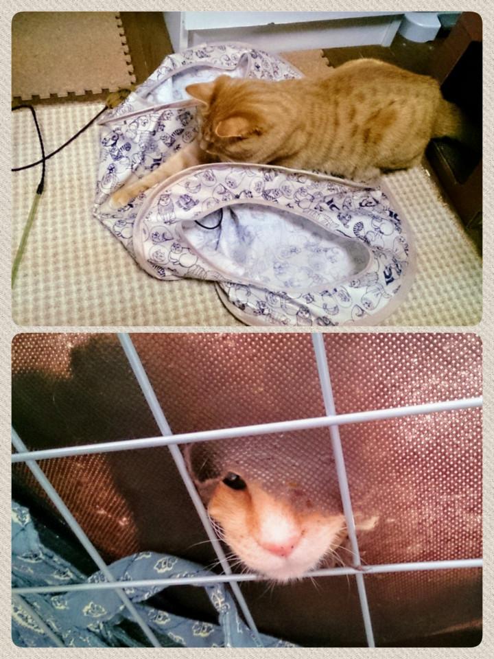 上)ねこのきもち付録のテント。どうして上に乗る~~壊れるぅぅぅ(;´д`)