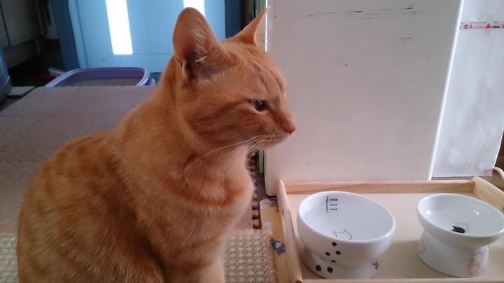 王子さま? ・・・いや女子だけど☆ キリッとした顔で、お皿の前でお座りしてます(*^^*)