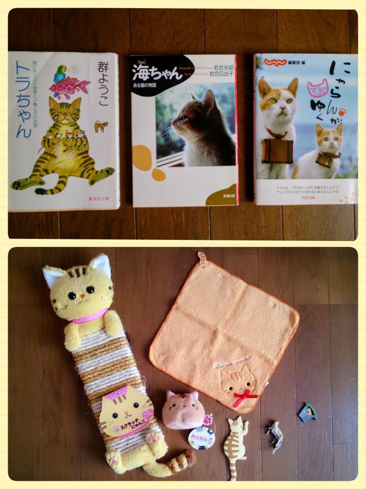 ちなみにうちの茶トラ、茶白猫本とグッズ♪ 毛色を気にして集めてなかったから、まだ少ないです。