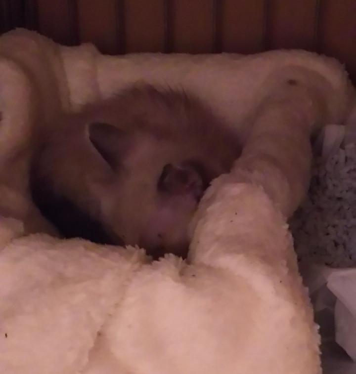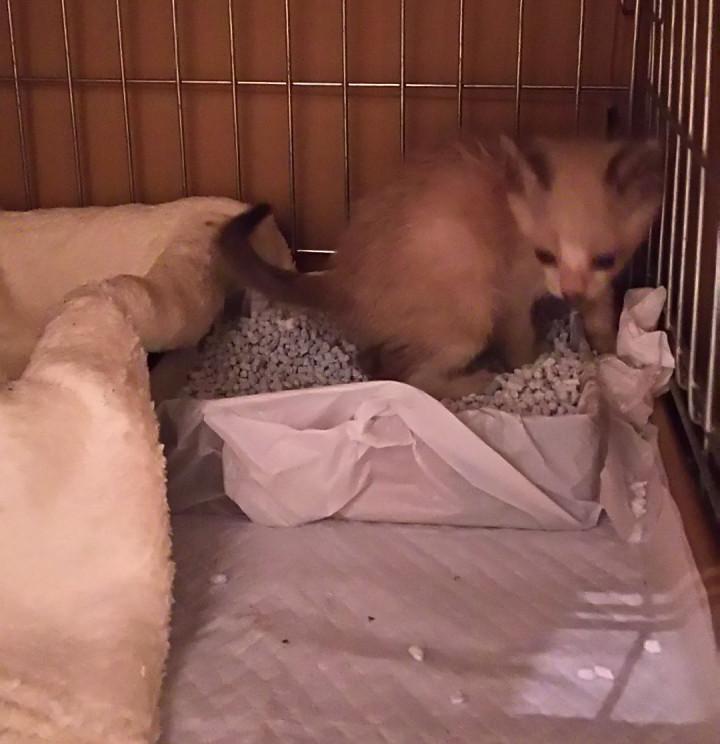 とりあえずごはんを食べて、用意したトイレに自ら入り大小済ませ、これまた自らベットに入り眠ってくれました。