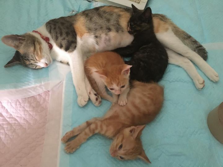 写真は親猫でもないのに何故か異様な母性本能を発揮して子猫を囲いこむうちの子!この子も去年拾った子!もうすぐ姉のおうちにお引越しです(^^)