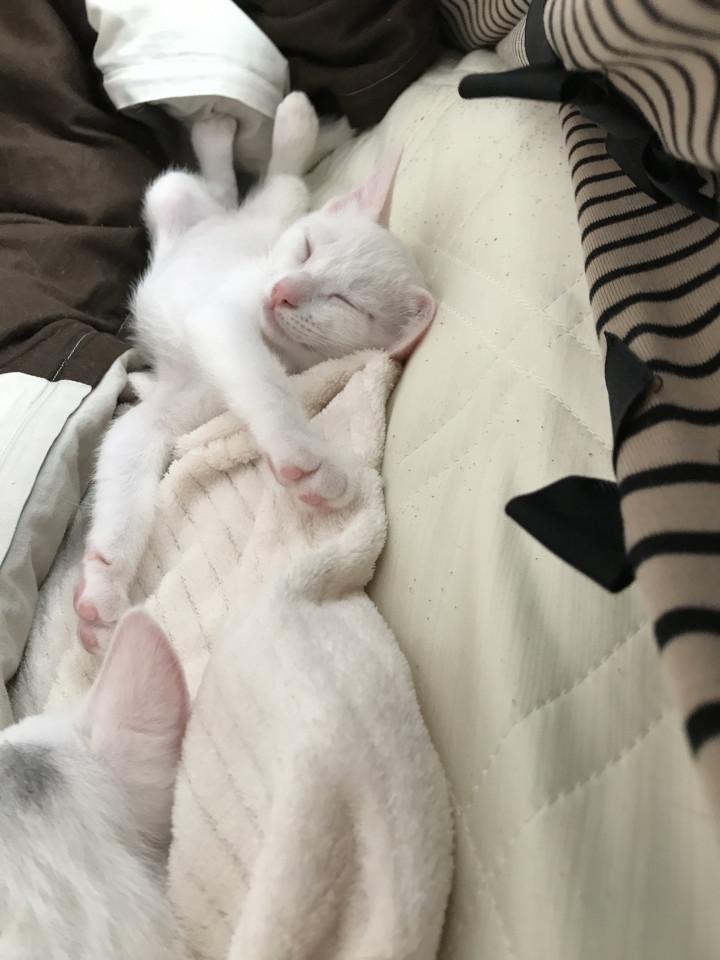 今はデビィと一緒にベッドで横になっています。暖かくなってきたので、デビィを洗いたいです。