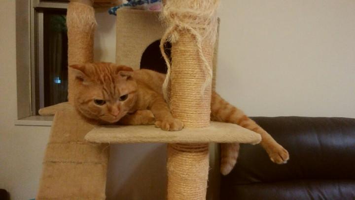 レオがえらいのは、ちゃんと爪とぎを使うところ。