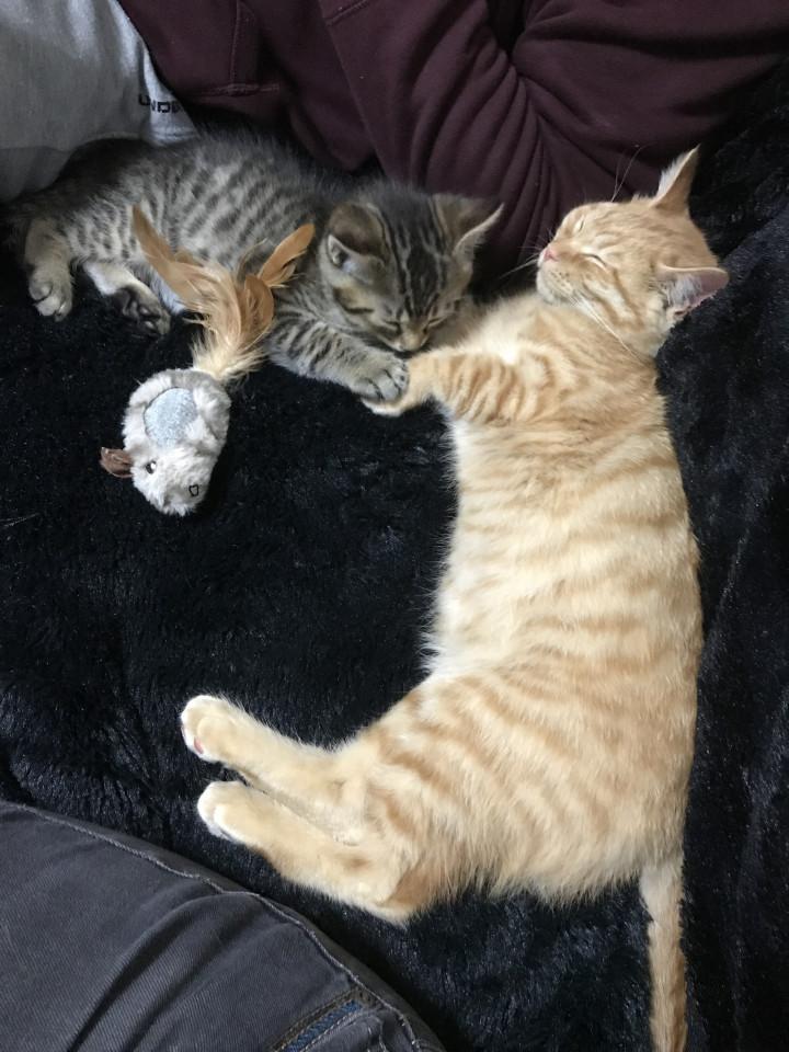 カインはササミほそーめんアベルはちゅ〜る貰って満足でおやすみなさい( ˘ω˘ ) スヤァ…