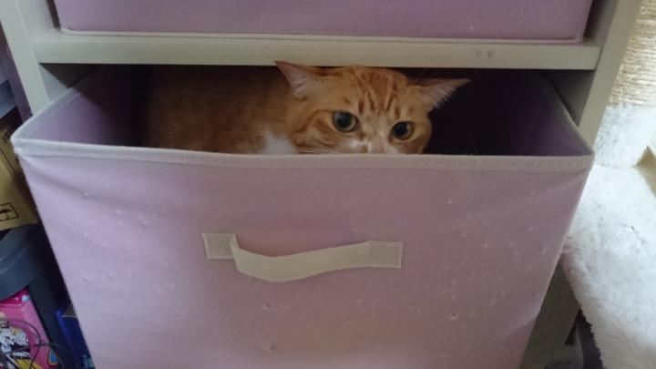 とろ選手!華麗にカラーボックスの中へ!そしてしばらくして脱出!小さいからいろんなところに入れていいねえ。
