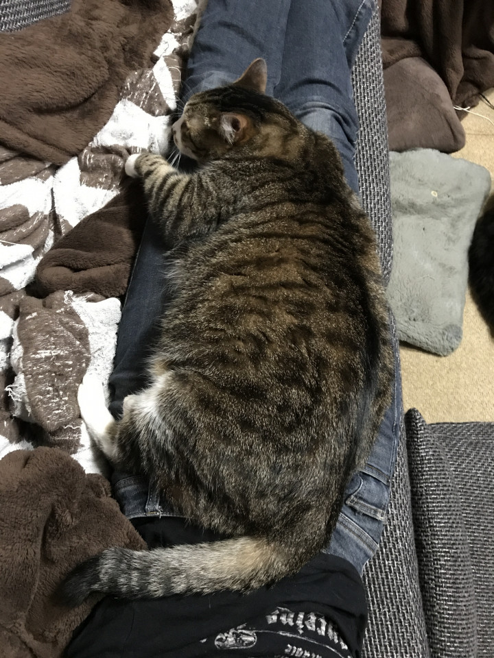 どうやら私をベッド代わりにしたいご様子なので寝転がってみると、この状態。