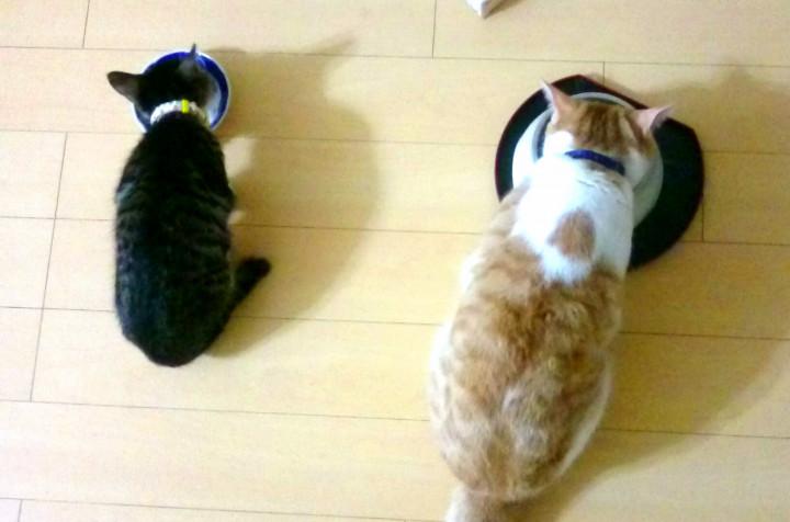 みぃみぃと、並んでご飯も食べれるようになりました♪