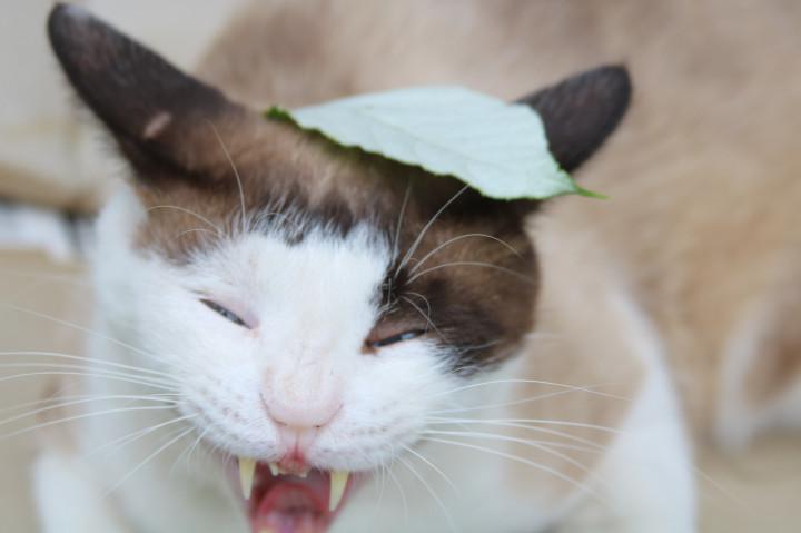 マタタビの葉っぱのせて、ご機嫌なテンションそのままにご近所をうろうろしてるのかな。