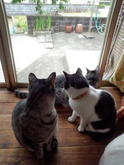 正午に鳴ると私が帰るので縁側に並んでるし 夕方も6時にお出迎え。。