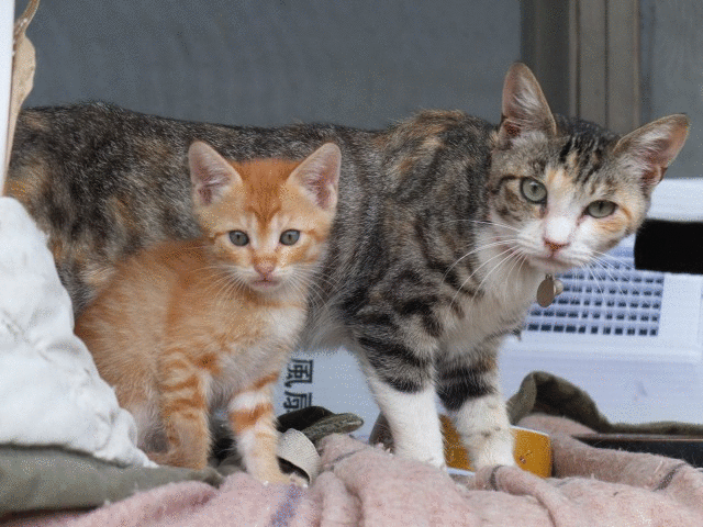 猫達もご機嫌よくしててくれる。チビ猫はあっちをうろうろ、こっちをうろうろ。