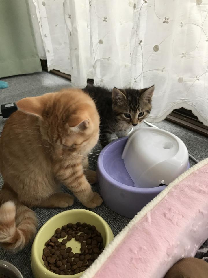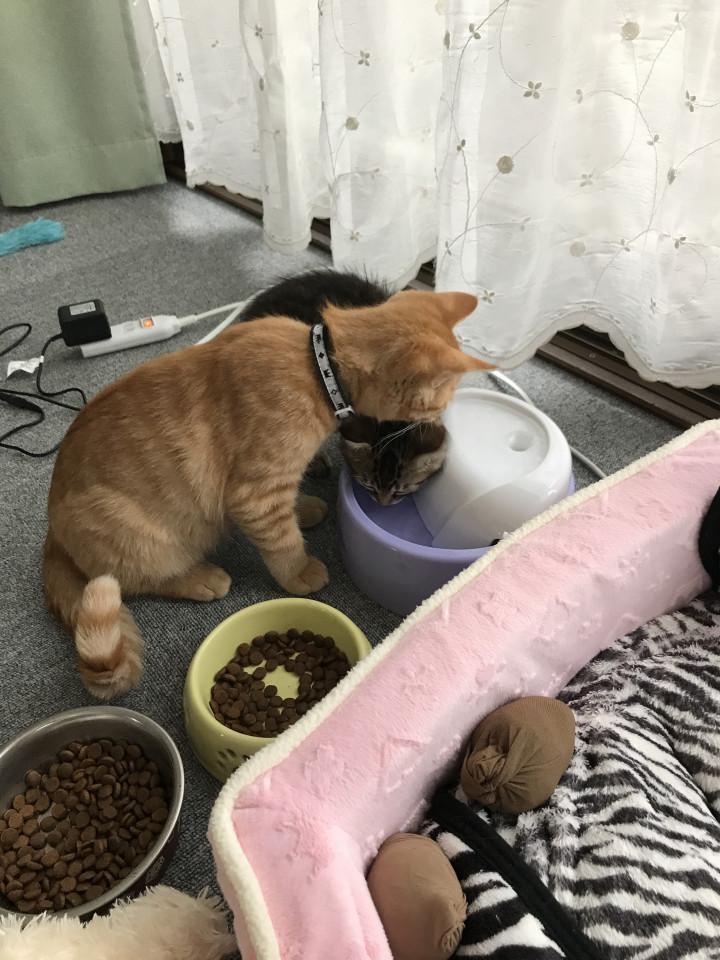 お兄ちゃんと並んで仲良く水飲んで(´ー∀ー`)