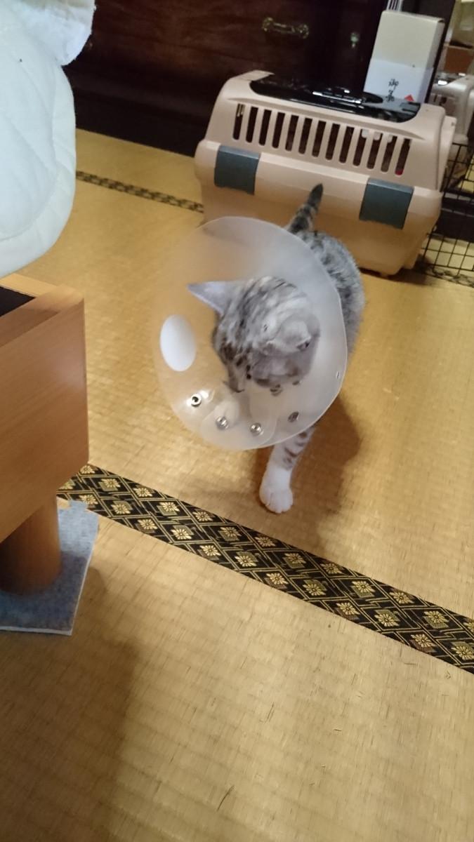 エリザベスカラーをつけました。とろちゃんにとっても私たち家族にとっても初体験…。と、とろちゃんが後ろ歩きをしました…!!な、なんだこれ?!と、わからなくていつも通りネットのお世話に。いろんなところにぶつかって歩いたりゲージに入れると狭そうにしたり… あまりにも可哀想なので家に人がいるときははずしました。