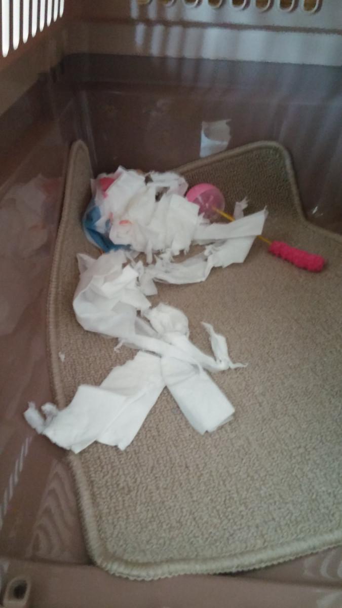 そこらに置いておくと箱ティッシュもトイレットペーパーもボロボロにされる😱