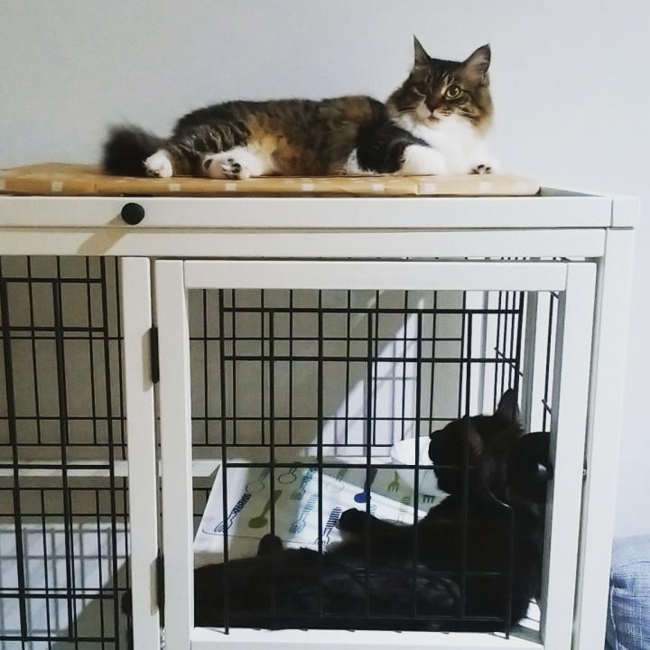 黒にゃーをリビングでフリーにさせる時は、先住たちを2階にあげてドアを閉めています。