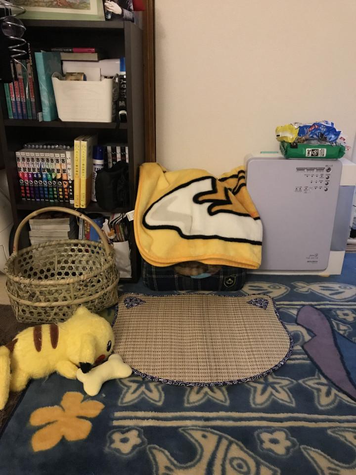 今日買ってあげた竹かごに〜ニャンコい草、カインとアベルの玩具に空気清浄機(笑)