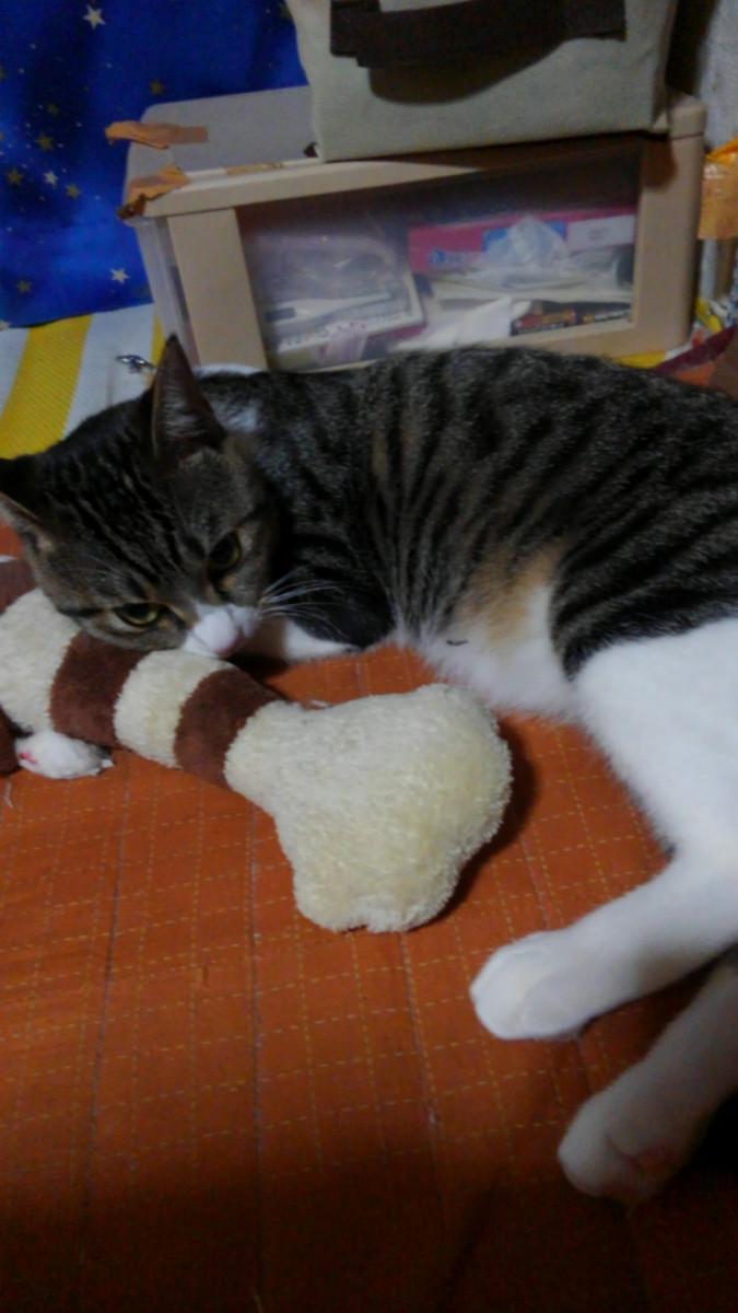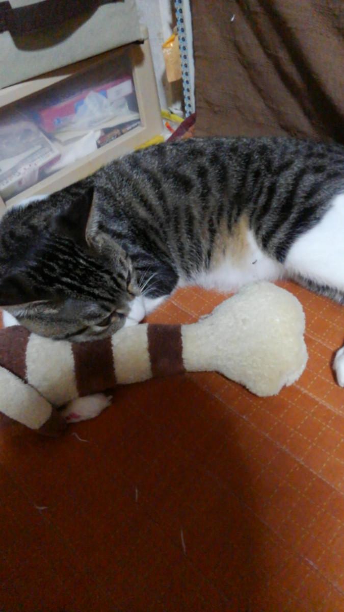 お気に入りのおもちゃ抱えて寝てるすがたが可愛くって