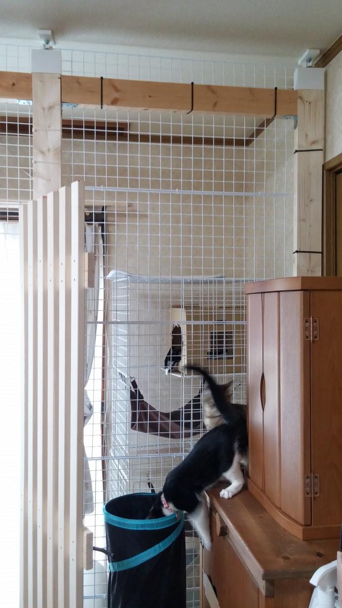 キッチンに柵とワイヤーネット張り巡らせました(夫が)