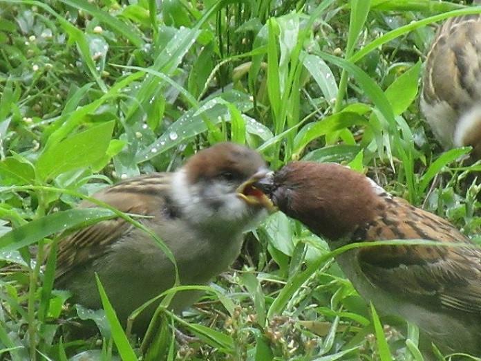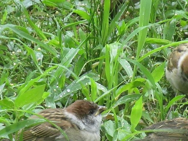 鳥たちは猫と違って雨は平気なのでいつもの様に雨に打たれながらの餌やりです