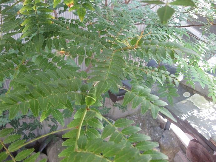家の裏にある山椒の葉を食べるアゲハチョウの子です