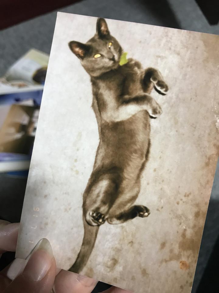 朝起きたらちょっと綺麗になった猫と手が傷だらけのお父さん(笑)」