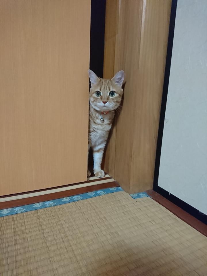 和室(家猫達は侵入禁止)の鍵を掛けずにおくときなこが侵入