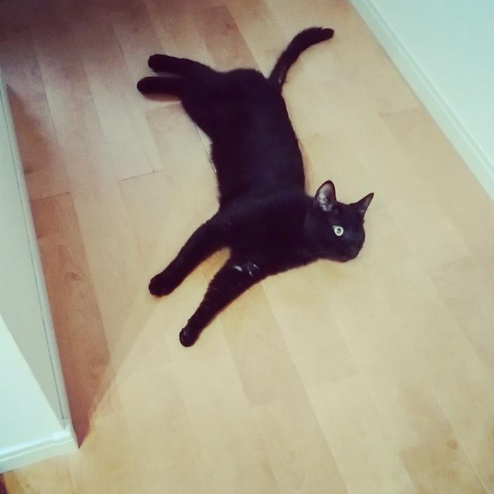 夜、黒にゃをフリーにして私はソファで寝転がってると、お腹の上に乗ってゴロンゴロン。