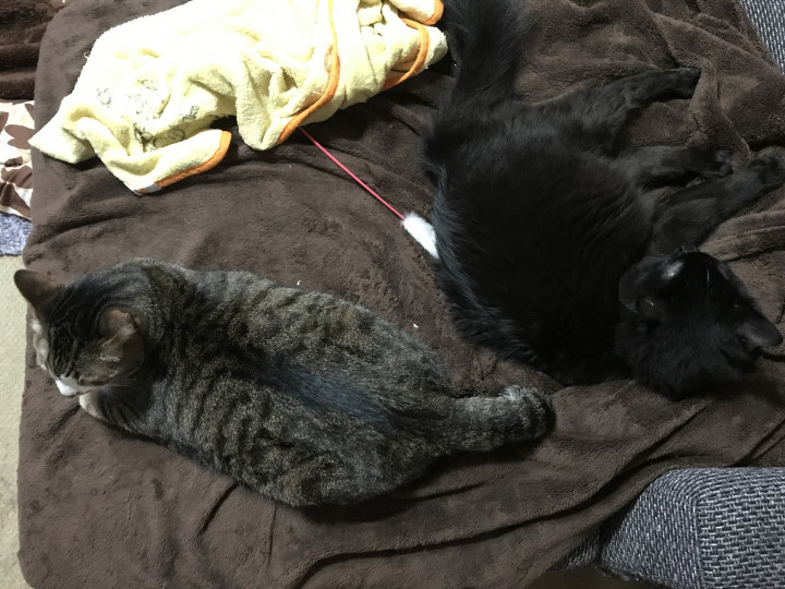 心配していた大雨ほどではなく、窓を閉めて雨音を聞きながら猫さん達はウトウト