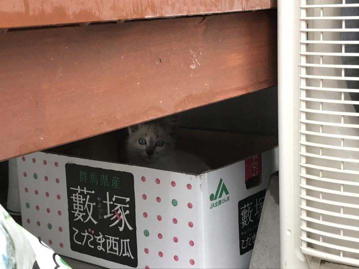 この子猫だけウッドデッキ下に。