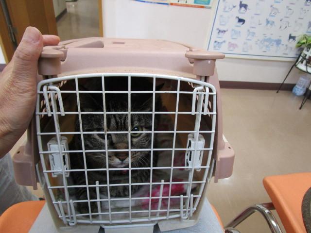 病院では先生が目の検査する道具を取りに行った隙に、ボクは自分でキャリーに戻ったよ。