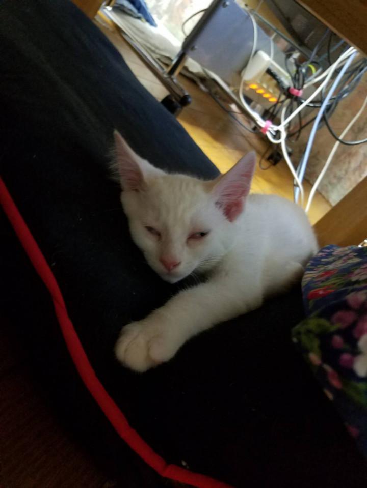 寝てると耳・顔・首筋をペロペロと舐めてくれるのですが猫の舌なので痛いのです