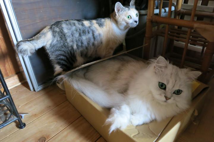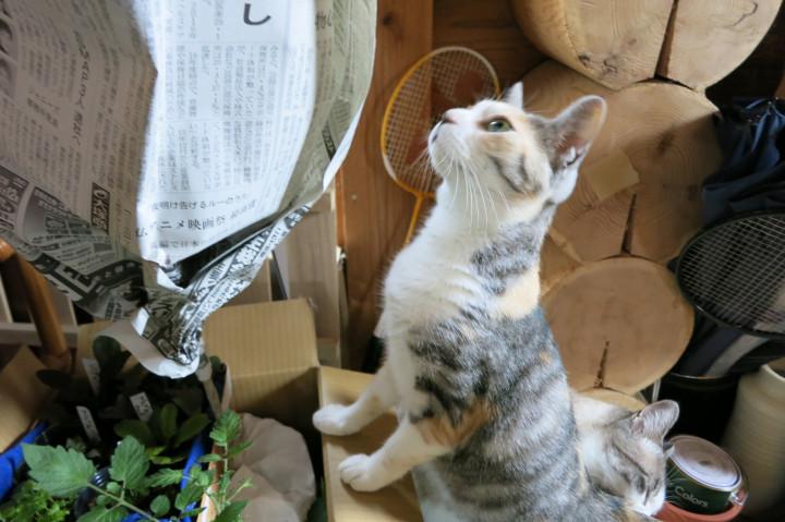 私が玄関で猫友さんに送る苗の箱詰めをやっていたら、みんながゾロゾロとやってきました😅