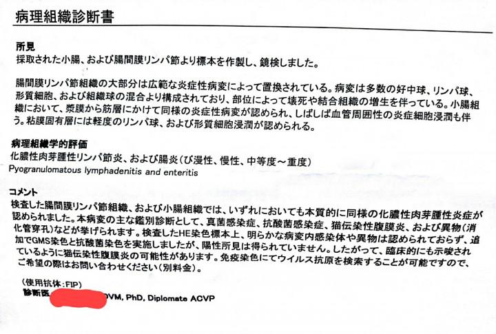 そこから、FIPかリンパ腫の疑いがあることを告げられ…さらなる鑑別診断の為に細胞診や生検(病理診断)をして