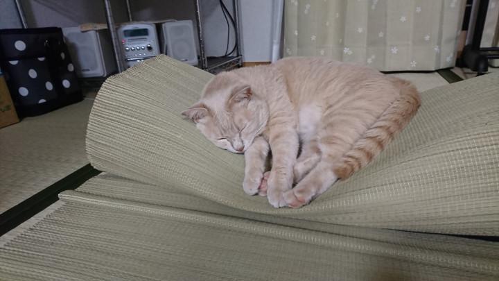 遊んでる時についた爪あとだろうけど、日増しにひどくなるので暑くなってきてるのもあってゴザを買ってみました