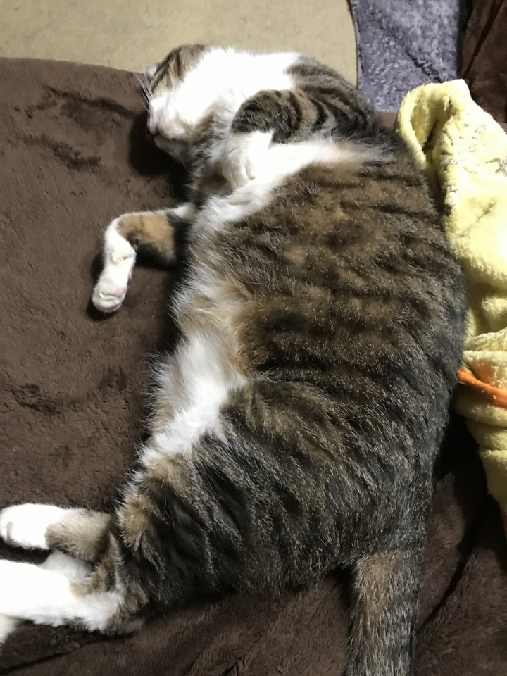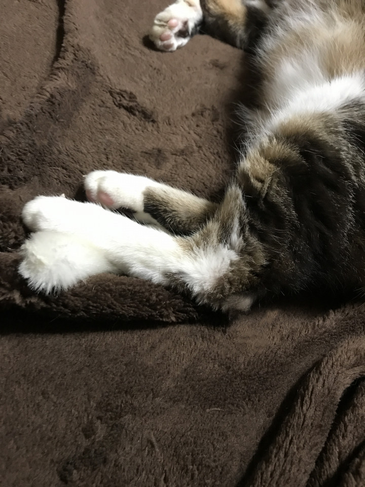 もう暑いからその毛布をタオルケットに変えてあげようかなーなんて思いながら微笑ましく見ていたんですが・・・あれ?