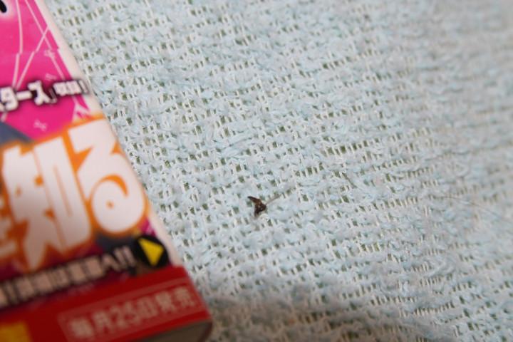 彼を一晩中悩ませたその敵は、颯爽と現れた最強の狩猫、チーによって両手で挟まれ、タオルケットに押し付けられ、その短い生涯を終えたのだった。