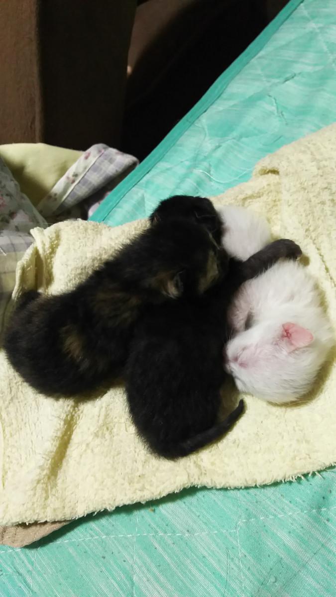 いつも外に居る野良猫の白猫(こはく)ちゃんと白黒猫(まる)くんは、アパート住人の人気者です。野良なのに、まるはお腹をみせてくれます。一方こはくは警戒心が強いので触ろうとすると逃げてしまいます。でも、こはくはまるが大好きなので離れません。唯一、食べている時だけ触れる事が出来ます。ちょうど1ヵ月くらい前に旦那が、「こはくのお腹が大きくなっていないか?」と言ってきました。触れるタイミングを見計らって触ってみると、お乳が張っていて確かに妊娠している感じでした。その日もいつもの様に玄関を開けると二匹入ってくるので家で飼っている猫のご飯を分けしてあげました。しかし、まるだけしか食べなくて、こはくは落ち着きなくウロウロしていました。お腹すいていないのかな~と思った矢先、破水しました。慌ててお風呂場へ連れて行き、そこにバスタオルを敷きました。最初、頭が見えてから15分以上、なかなか出て来なかったのでヒヤヒヤしました。こはくは何度も何度も泣き叫ぶ声を出し、ようやく出産しました。でも出てきた子猫はぐったりしてピクリともしません。こはくが必要以上に身体を舐めてあげているのですが、それでも動かないのです。死んでしまったかも、、と思った矢先か細い声で鳴いたのです。良かったぁ~若干、弱弱しくて安心できないのですが生きてくれ!と身体をタオルで拭いてあげると、あくびをしたので大丈夫だと思いました。こはくは1匹目の出産で疲れたらしく2匹目もなかなか出て来ません。インターネットで猫の出産を調べていた旦那が15分間隔で普通は産まれるらしいと言ってきました。あまりじーっと見ているとプレッシャーを与えて可哀想なので、その場を離れてみることにしました。20分経っても産まれていない、お腹の中で死んでしまったのかと、あきらめかけたのです。でもまた見に行くと真っ黒い子がこはくの隣に居たのです!鳴き叫ぶこともせず静かに2匹目が産まれていました。3匹目は比較的早く真っ白な猫がいつの間にか産まれていました。出産を見るのは今回で2度目です。今飼っている猫(もずく)がちょうど1年前の6月27日、4匹の子猫を産みました。もずくとは最初、野良猫の時に会ったのですが人馴れしていて、いつも足元にスリスリと寄ってくるので前に飼われていたのかもしれないと思いました。そして自然の流れで飼う事になったのですが、まさか妊娠しているとは思いませんでした。飼い始めて2ヶ月くらい経って「最近、よく食べるから太ったよな~」と旦那と話していたのです。まさか子供が産まれるなんて夢にも思いませんでした。そして、もずくが出産してから1年が過ぎ、また新たな命が誕生しました。だから6月27日は特別な日です。もずくの子供、わさび1歳のお誕生日おめでとう。そして以前ネコジルシで飼い主を募集し、もずくの子供の里親探しで2匹と1匹に分かれましたが良い方に貰っていただく事が出来ました。ひじき、きなこ、エイリヤン1歳の誕生日おめでとうございます!ひじきの飼い主とはLINEで連絡していますが、きなこ、エイリヤンの飼い主とは連絡が途絶えてしまいました。みんな元気で暮らしているといいけどなぁ。長々の日記になりましたが、ありがとうございます。