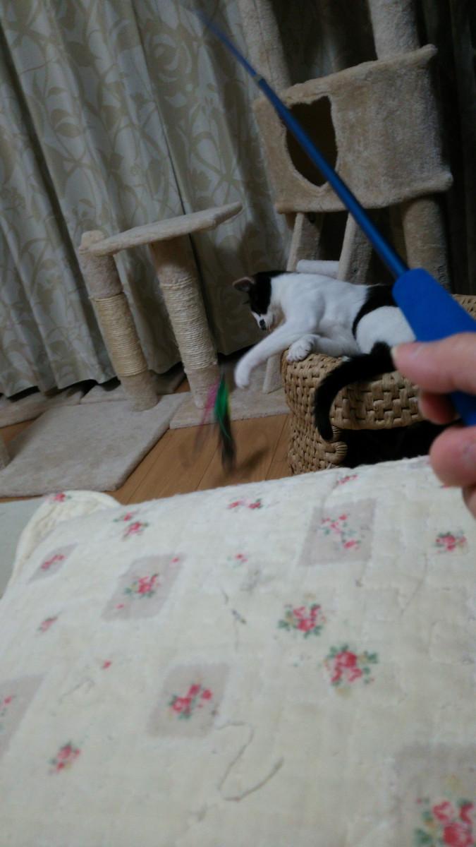 猫じゃらしを振っているのが手だ、と理解しているみたいです。
