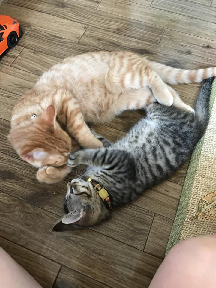 長男 カイン 2017年3月7日 茶虎 去勢済み ♂ マイクロチップ済み フード ヒルズk/d腎臓ケア 朝晩ラプロス 1日60g 次男 アベル 2017年4月22日 雉虎 去...